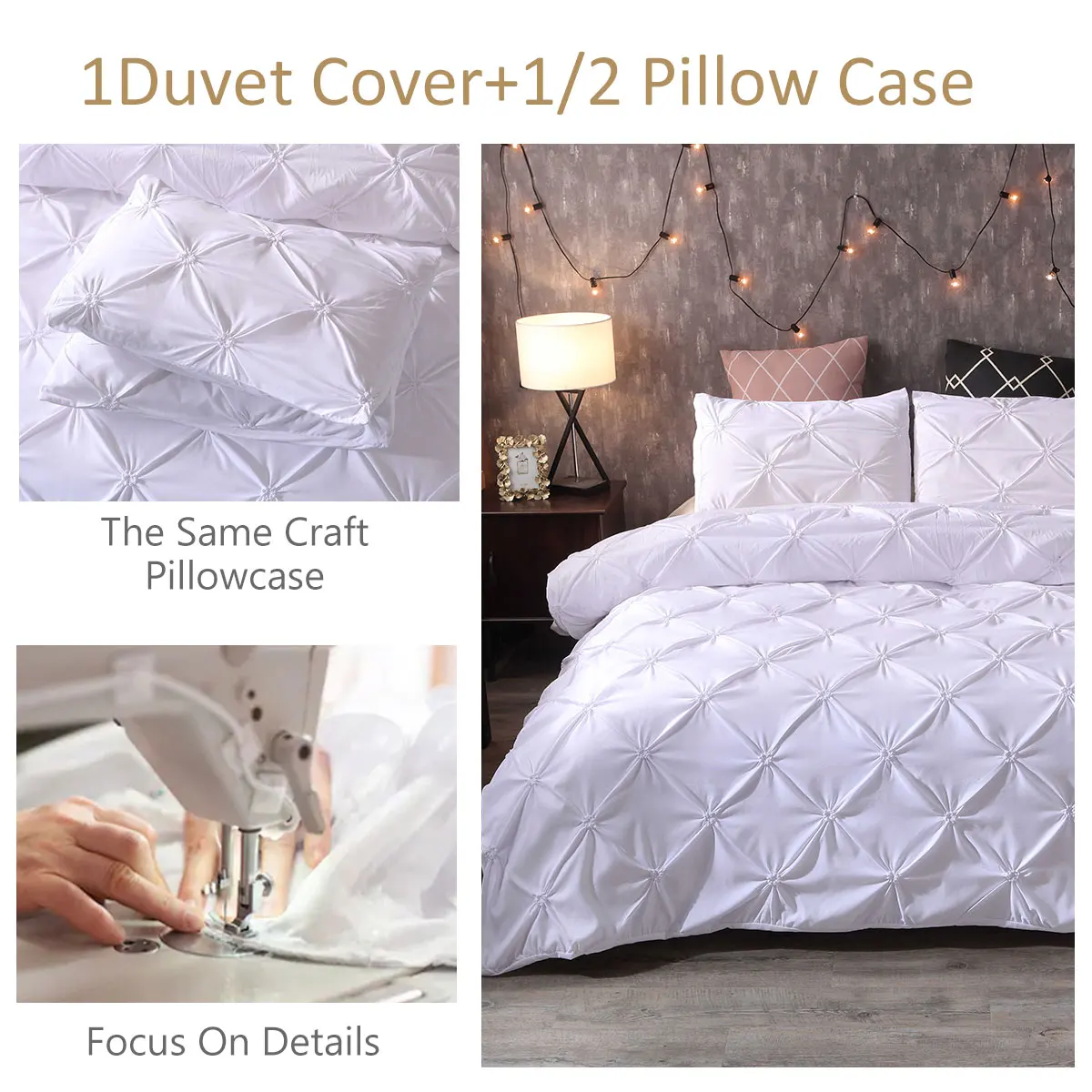 Luxury Bedding Set Pinch Pleat White Duvet Cover With Pillowcase Grey Double Bed Cover Set King 2/3pcs